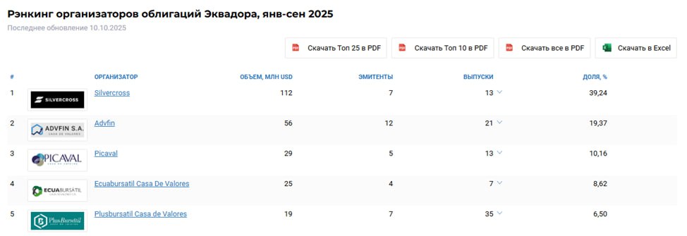 Новый рэнкинг организаторов локальных корпоративных выпусков Эквадора доступен на Cbonds