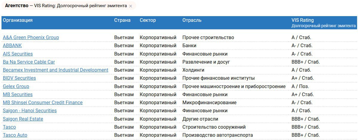 Рейтинги агентства VIS Rating доступны на сайте Cbonds
