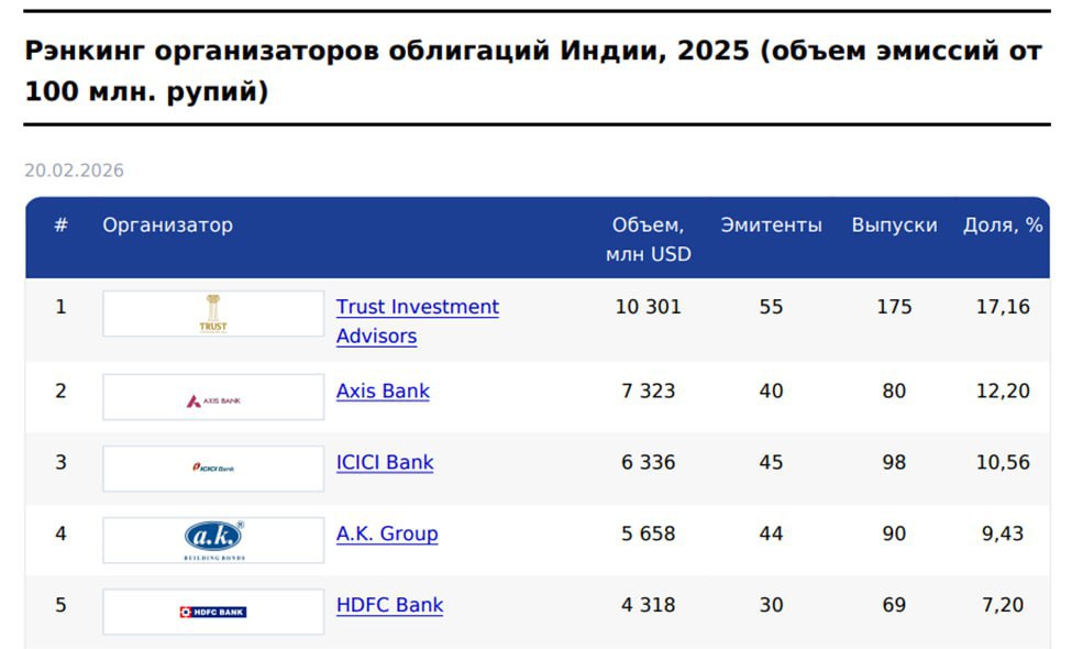 Новый рэнкинг организаторов внутренних облигаций Индии уже доступен на Cbonds