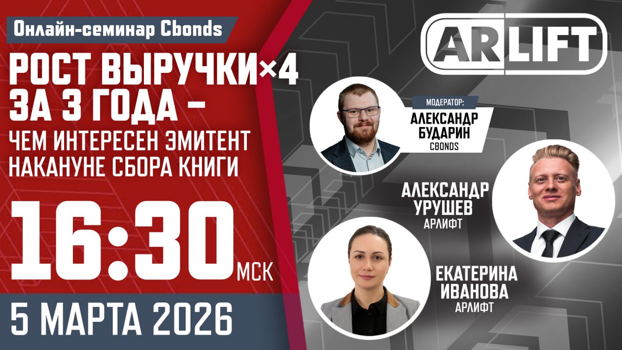 5 марта в 16:30 (мск): онлайн-семинар Cbonds «ARLIFT: рост выручки х4 за 3 года — чем интересен эмитент накануне сбора книги»