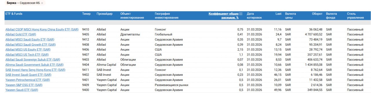 На сайте Cbonds стали доступны котировки ETF с Саудовской фондовой биржи (Tadāwul)